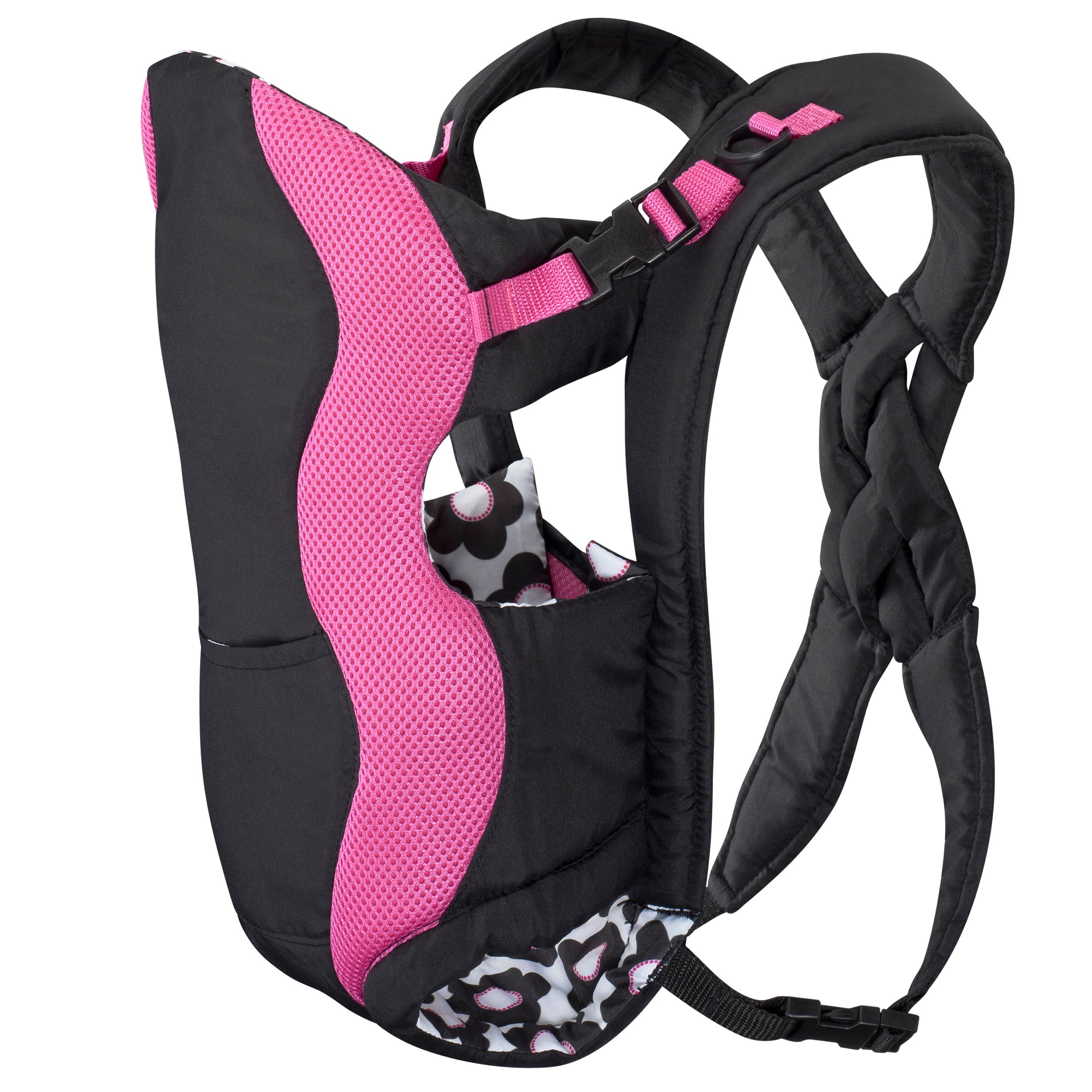 And there’s no complicated tying! It’s baby wearing made simple. This soft baby carrier offers a safe and convenient single side-entry that sits baby comfortably and securely. The patented adjustable crisscross back strap design distributes your child’s weight evenly across your back and shoulders for comfortable wearing. Plus. the Breathable Carrier features a little extra padding in the places that count. like in the shoulder pads for parents and in the head support to cradle baby’s precious head.